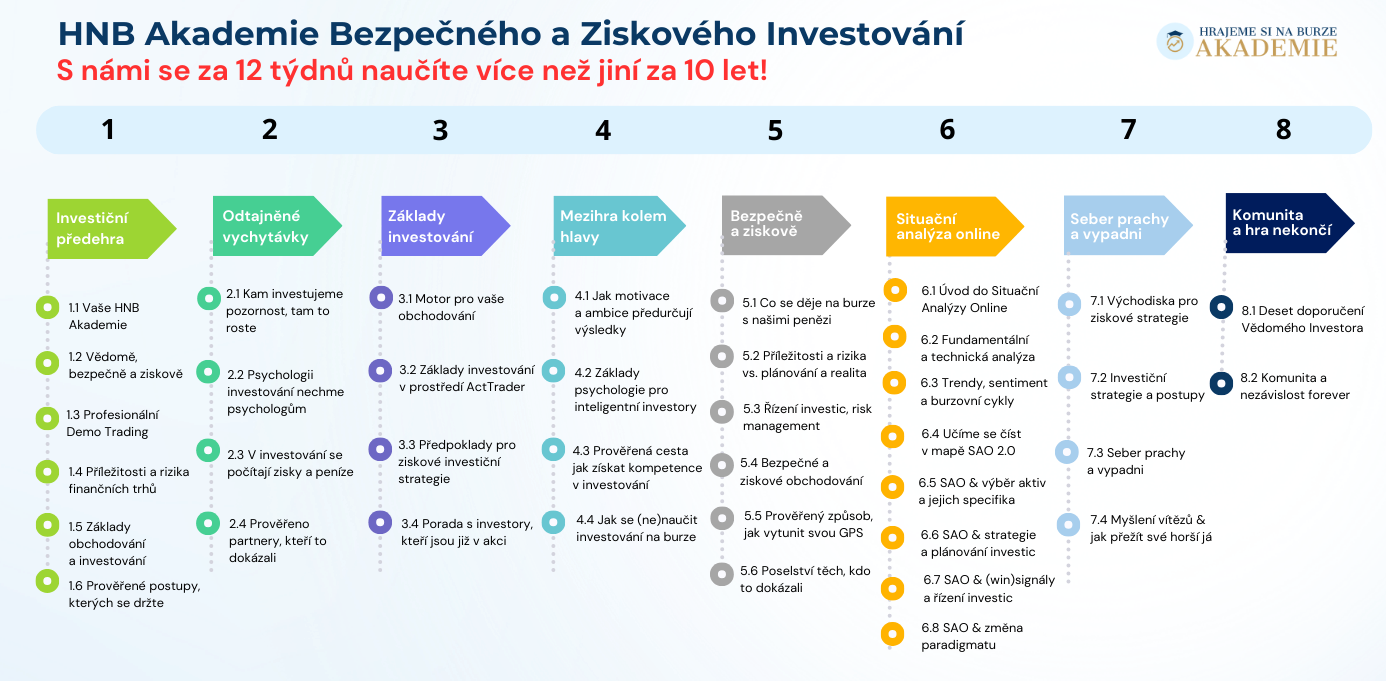 - INVESTORSKÁ HNB AKADEMIE8 modulů, 32 lekcí a 16 technických videí