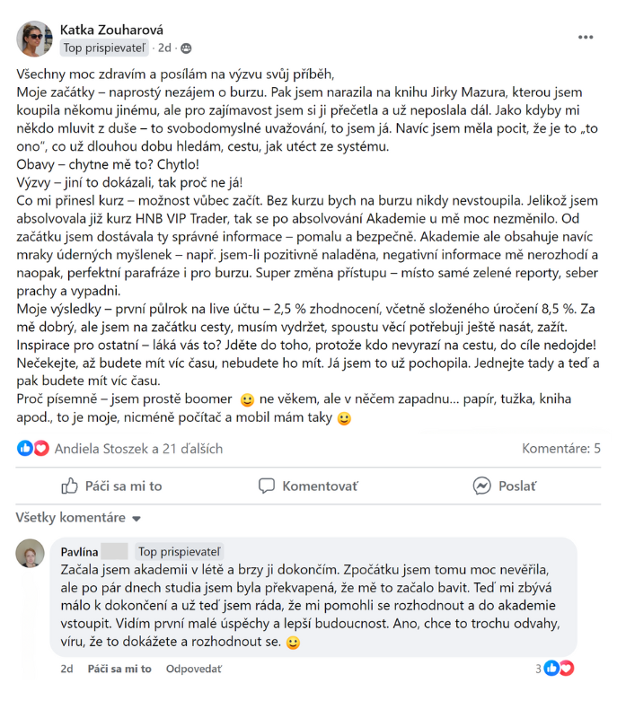 Od začátku nastaveno na vítěznou Cestu Vědomého Investora.